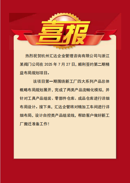 【喜報】祝賀匯達企管攜手老客戶續約第6期精益項目合作