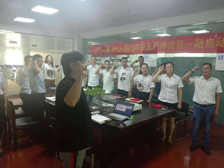 最后,由精益項目小組執行組長翁總帶領“精益生產管理”項目實施的各部負責人進行宣誓,并由包總向“精益生產項目”實施小組的執行組長、專員及各改善小組負責人頒發了聘書。