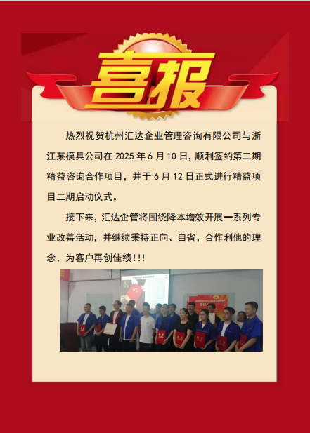 【喜報(bào)】匯達(dá)企管續(xù)約模具工廠二期精益項(xiàng)目